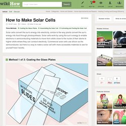 How to Make Solar Cells. Solar cells convert the sun's energy into electricity, similar to the way plants convert the sun's energy into food through photosynthesis. Solar cells work by using the sun's energy to enable electrons in ... Fetch Document